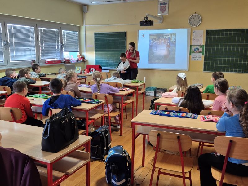 Učenici 2. razreda sudjelovali su u radionici „Pomozi prijatelju“, tijekom koje su učili na koje sve načine mogu pomoći svojim prijateljima, osobito u slučaju ozljeda. Kroz praktične aktivnosti upoznali su temeljne postupke prve pomoći, poput pravilnog čišćenja i previjanja rana te postupanja kod manjih ozljeda. Posebno ih je razveselilo što su imali priliku isprobati sadržaj torbice prve pomoći te uvježbati njihovu pravilnu primjenu u sigurnom i poticajnom okruženju.
